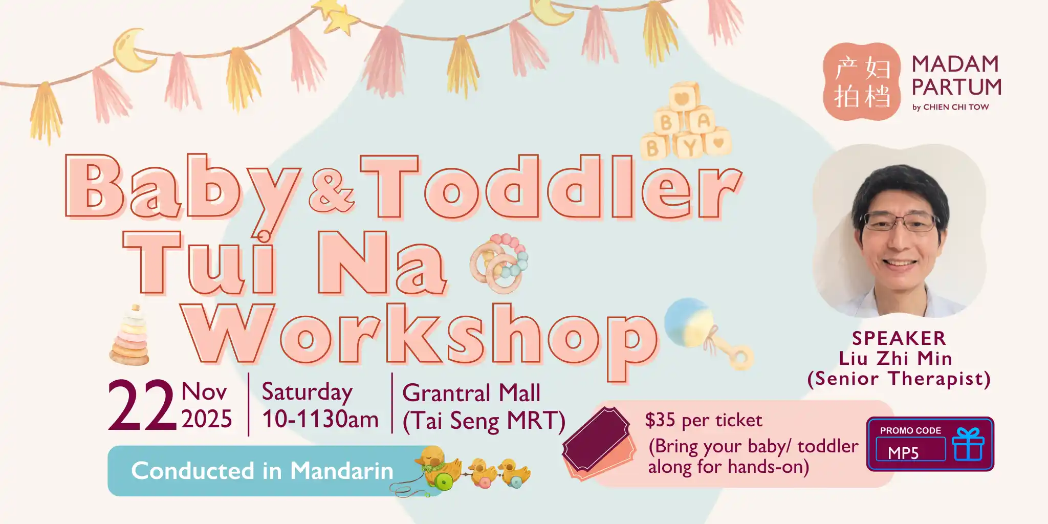 #AskMadamPartum. Join us for an exclusive event designed to support new parents like you who are looking to nurture your child’s health naturally! This workshop is designed to equip you with invaluable knowledge on using traditional Chinese medicine (TCM) remedies and Tui Na therapy, a specialised form of paediatric massage, to support your little one’s overall well-being.