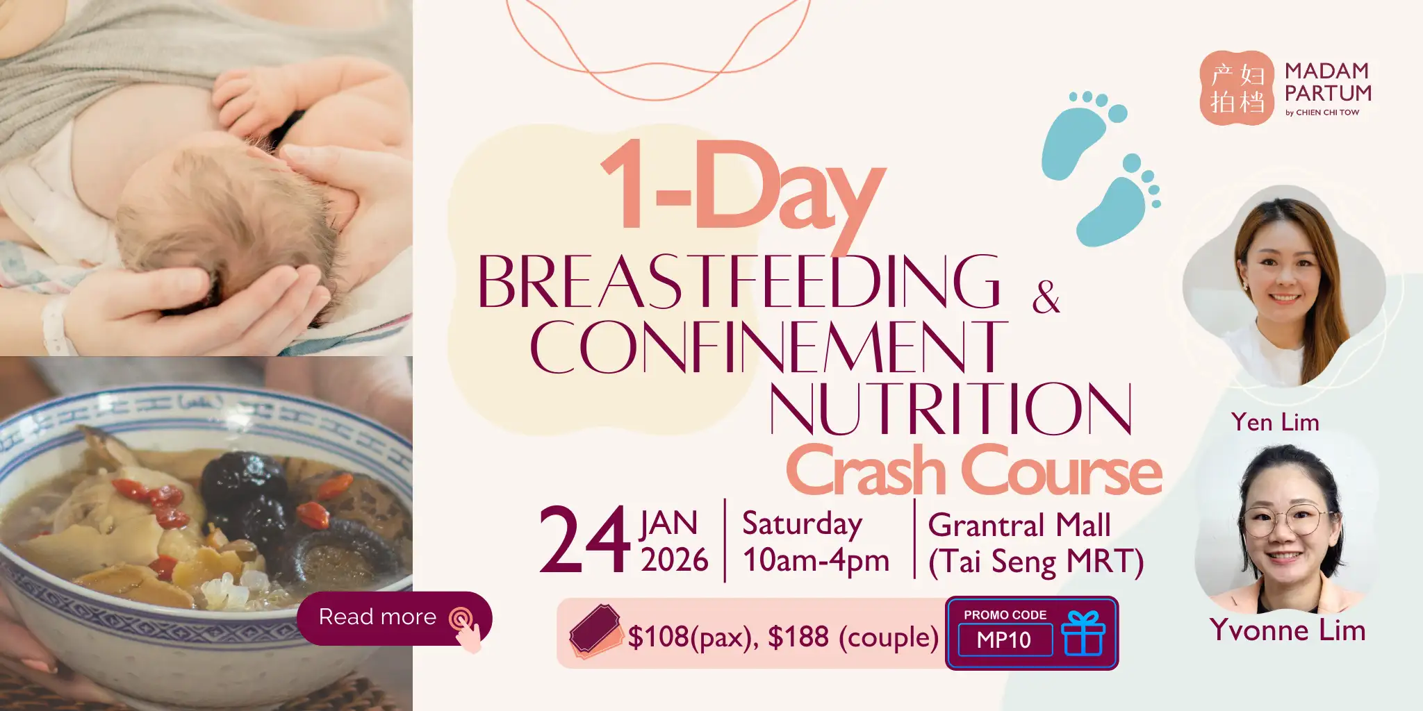 #AskMadamPartum. Get ready for the journey of a lifetime with our 1-Day Breastfeeding & Confinement Nutrition Crash Course! Perfect for busy parents-to-be, this power-packed program breaks down everything you need to know about breastfeeding and confinement nutrition — all in just one day. Whether you’re preparing for your first baby or looking for a refresher, our expert-led sessions will equip you with practical tips, essential knowledge, and the confidence to navigate your parenting journey. Join us and take the first step toward a smooth, well-prepared transition into parenthood!